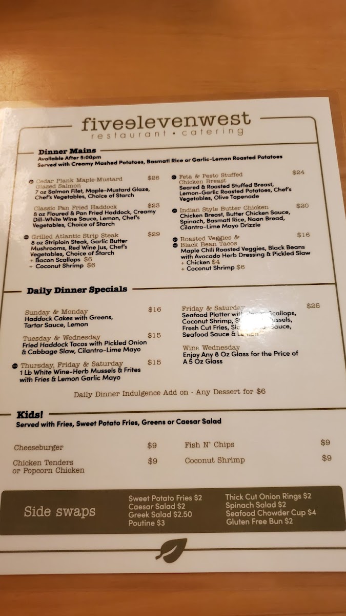 Dinner options shine with delectable mains like the Prosciutto Salmon and Floured Pan Fried Haddock, promising rich flavors and quality ingredients. From friendly service to generous portions, diners rave about the satisfying meals and welcoming atmosphere. With a variety of gluten-free and vegetarian choices, Fiveeleven West truly stands out in Summerside. Indulging in their culinary creations is a journey you won’t want to miss!